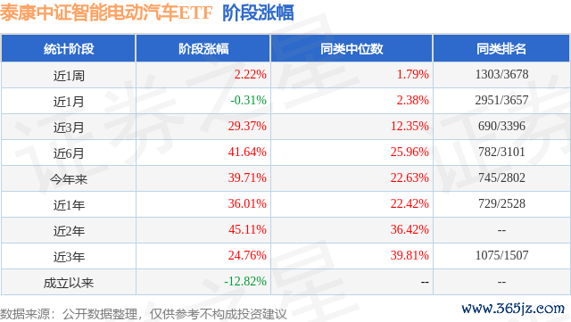 从业绩表现来看,泰康中证智能电动汽车ETF基金过去一年净值涨幅为15.25%,在同类基金中排名803/2216,同类基金过去一年净值涨幅中位数为11.09%。而基金过去一年的最大回撤为-19.55%,成立以来的最大回撤为-61.15%。