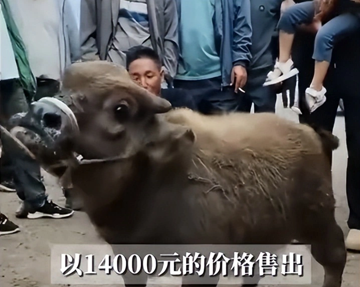 因为这样可爱的小牛非常难得,所以最后李先生花了14000元,最终将小牛买了下来。