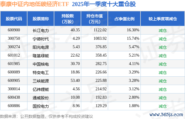 本站消息鼎合网配资,日前泰康中证内地低碳经济ETF基金公布一季报,2025年一季度最新规模0.69亿元,季度净值涨幅为-5.57%。